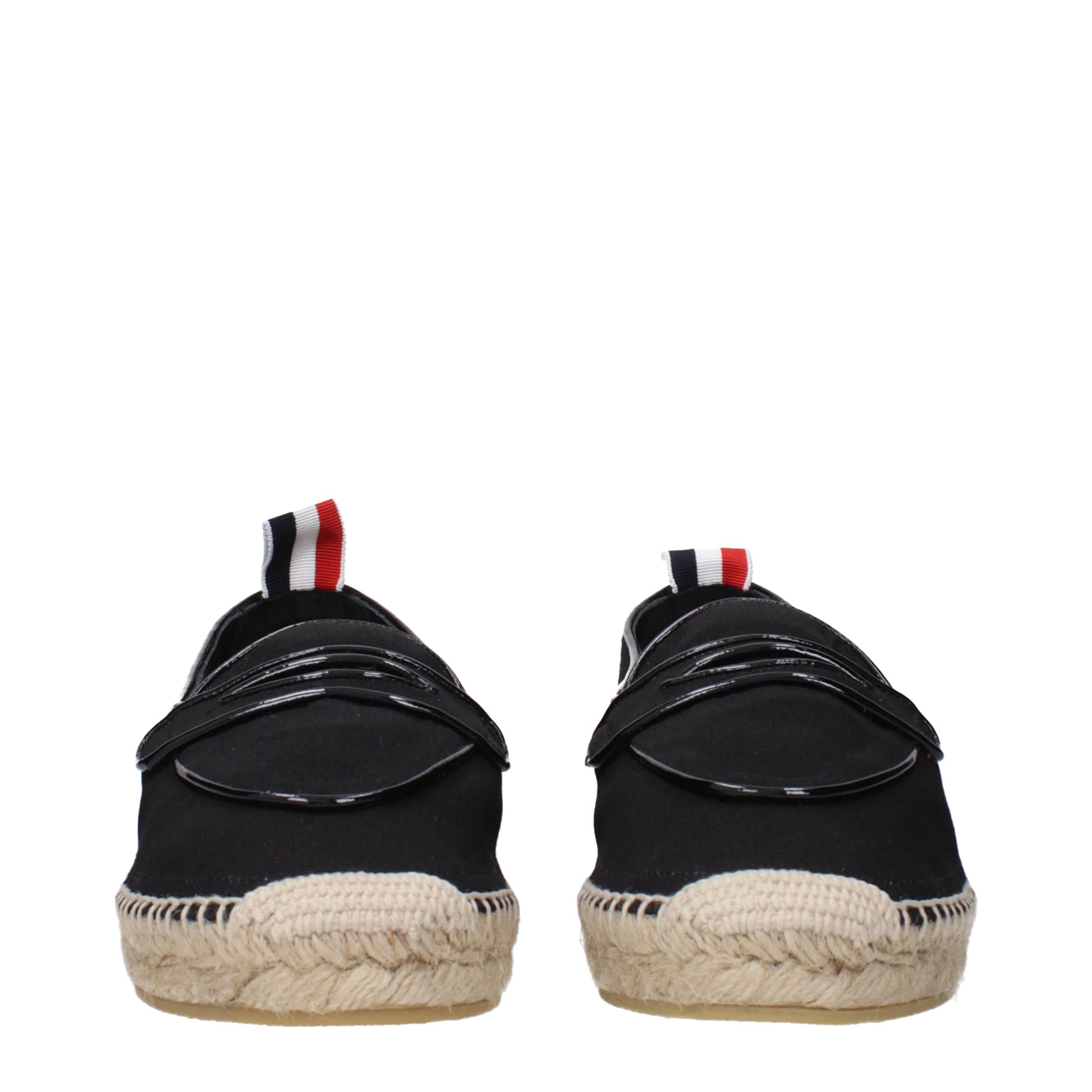 L'articolo con MPN FFF146AF0311001 e codice F83590 modello penny in tessuto di colore nero fa parte della categoria espadrillas del designer Thom Browne. Presenta caratteristiche come dettaglio frontale.
